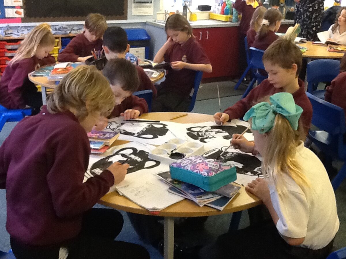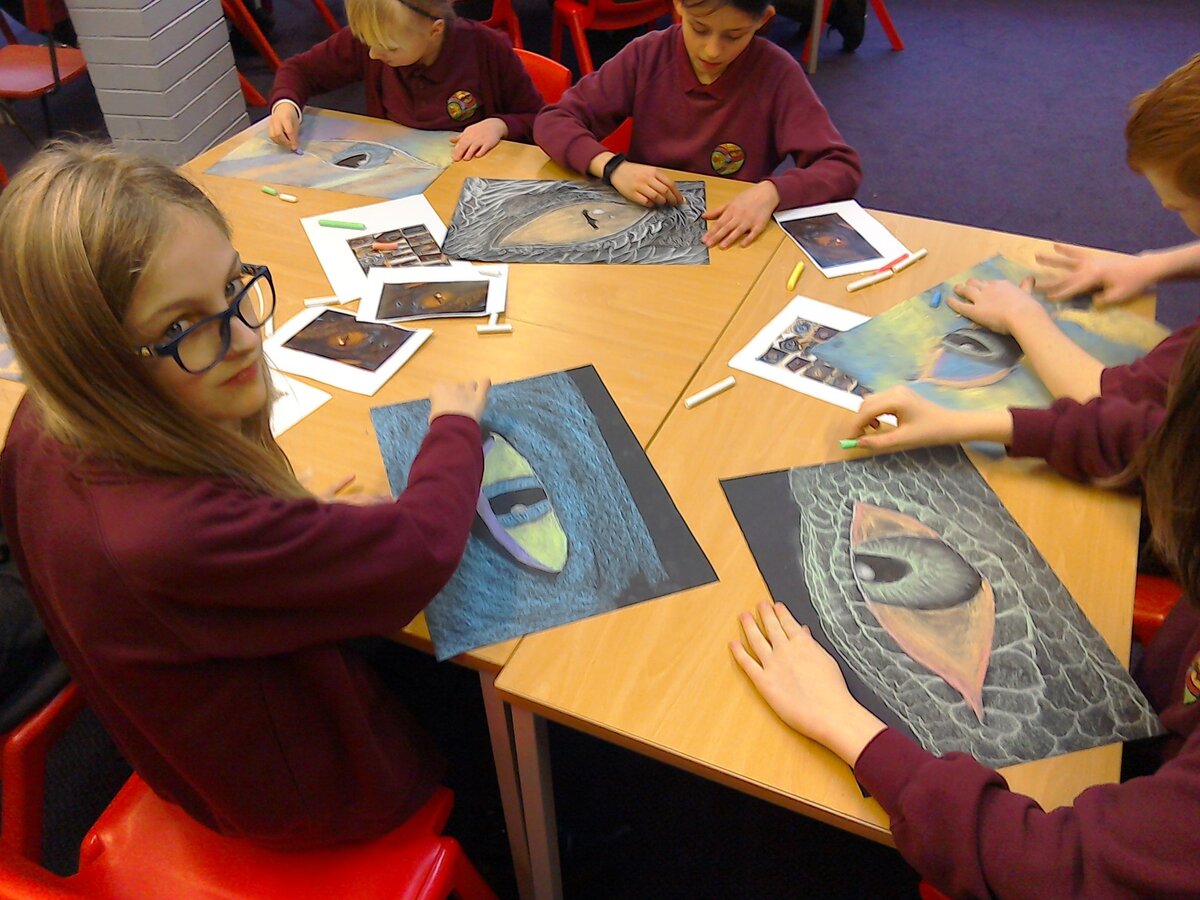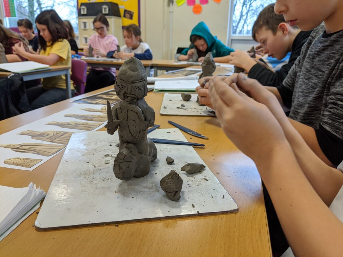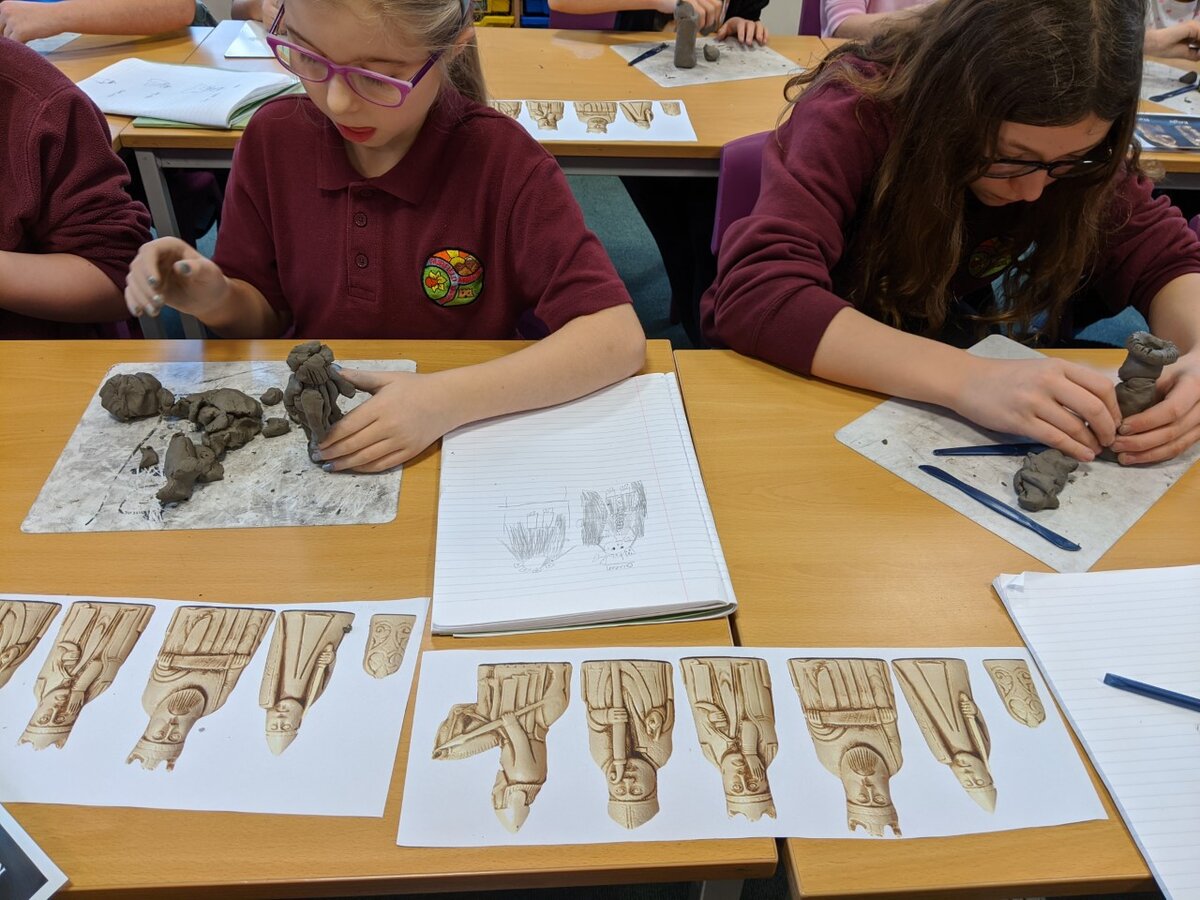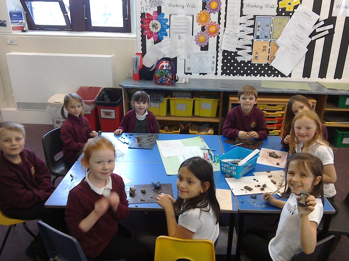 There was a wide range of different media and skills used across the school from charcoal in Year 2, to clay with Year 5 and even painting with footprints from our Nursery children.