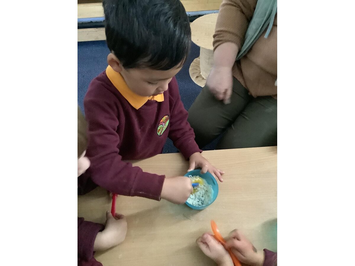 In Nursery, there's been an Autumn feel to activities, with our Friendly Frogs completing an exciting Autumn walk around our beautiful grounds as well as all of their Funky Finger challenges also relating to the season with children finger painting trees, writing with carrots, making play dough hedgehogs and practising their safe scissor skills with some autumn cutting. In addition, the Friendly Frogs have been scientists this week and have been making lots of ‘predictions’. They decided to experiment with eggs. The Frogs decided that they wanted to mix egg with flour and sugar then cook it; mix egg with rice and cook it; crack an egg in a bowl and cook it; boil an egg; and put an egg in vinegar and leave it for a few days. The children were amazed by their scientific findings! We are extremely proud of our Nursery provision and this week saw new continuous play areas and resources on display for our youngest learners.
