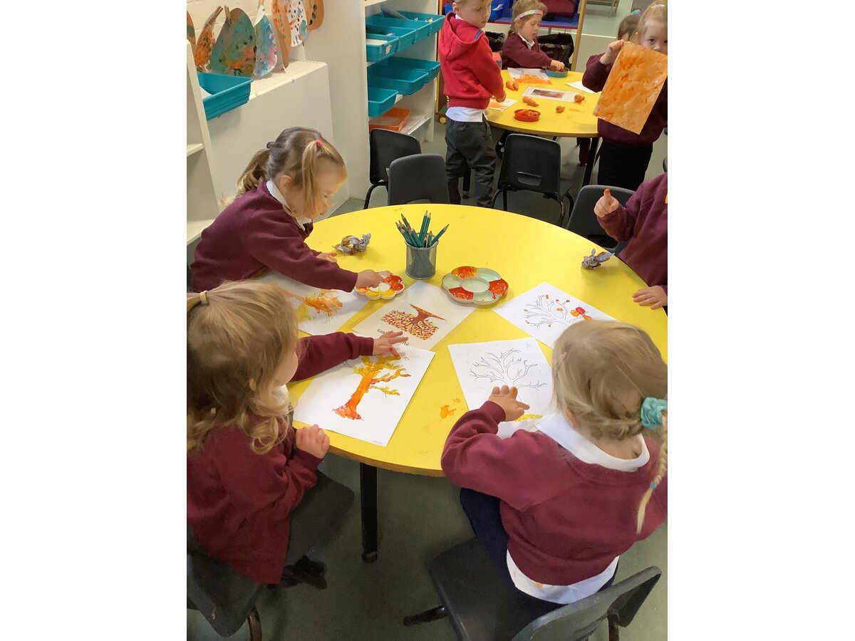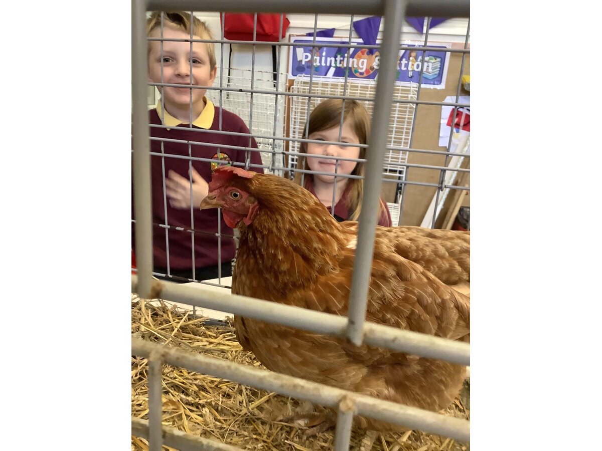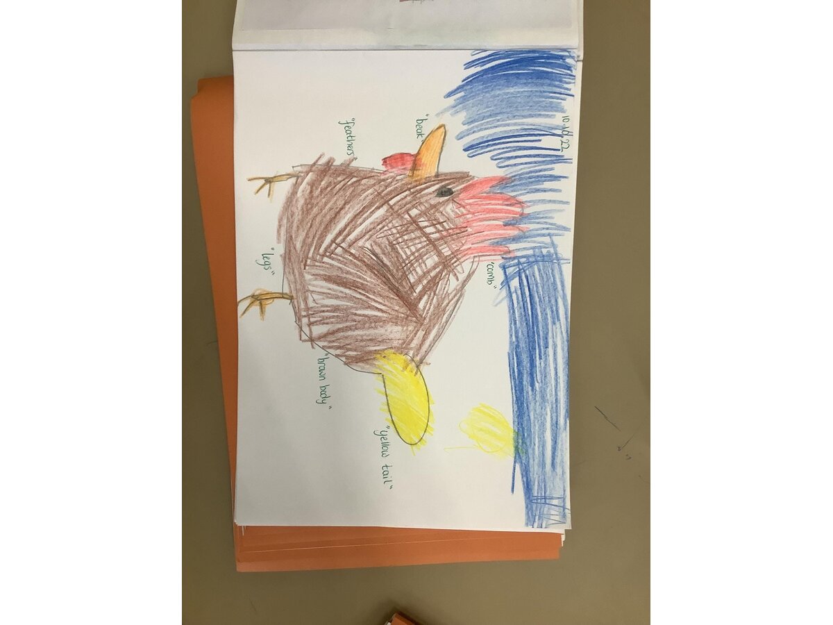 Meanwhile, in Reception, as part of their PE lessons, the children enjoyed ‘balls over the bridge’. At the start of the game, the children were split into two teams; the aim of the game was to get as many balls onto the other side of the bridge as possible but, the children weren’t allowed to move around on their feet! So there was lots of super shuffling from everyone! In Maths, pupils have been exploring the composition of the number 3. They have found different ways to make 3 using the animals on Rosie’s Farm (their current text of study). They generated number sentences using their maths vocabulary of add/plus and equals. The children’s sentences included, “One sheep add one cow and one dog equals three” and "Two sheep add one cow equals three". Also in Maths, the children have been counting chickens back into their coop after they escaped! The children were practising their cutting skills by cutting the chickens out and then had to work out how many chickens they needed using the number that was on their sheet. They were then able to recount their chickens to check they had put the correct number back in and that none had mischievously wandered off... At the start of the week, Reception welcomed a very special visitor.... The children are reading their new book 'Rosie’s Walk' and it seems Rosie walked into Fairfield on Monday! The children were very sensible and kind to their visiting hen, which provided an exciting hook to the book! Later in the afternoon, our Reception pupils had a go at drawing Rosie and then labelling the different parts of a chicken. The children were able to label lots of different parts and have learned some new vocabulary, including: beak, wing, claws, comb and wattle! On Thursday afternoon, the children were looking at aerial views of farms. They spotted and chatted about the different features and then worked very hard drawing their very own. In their Art lesson this week, the children had a go at sketching David Hockney’s 'Bigger Trees Near Water'. They talked about what they could see in the picture and the different things to include in their own drawing. The children worked very hard on this and did a brilliant job!