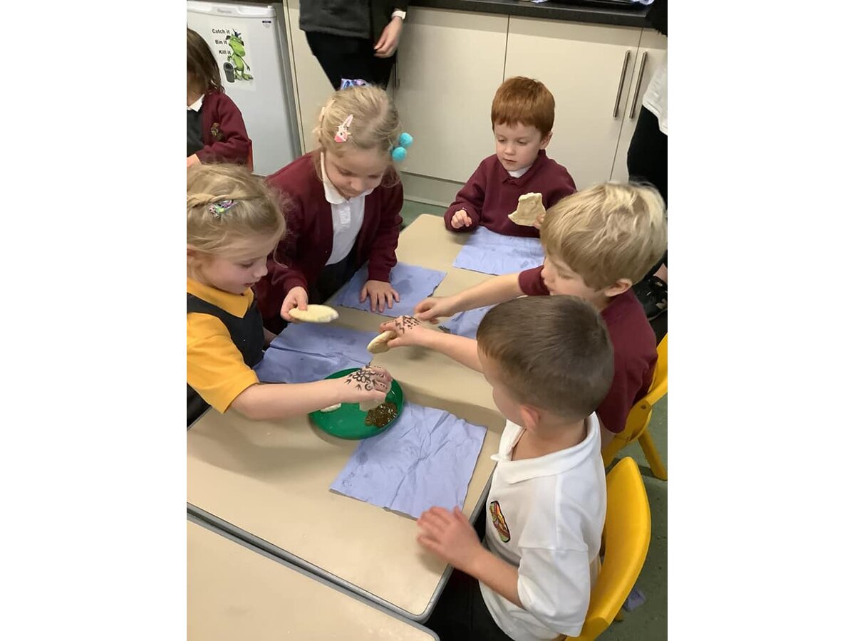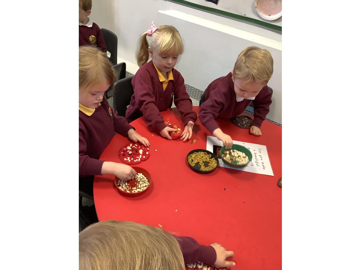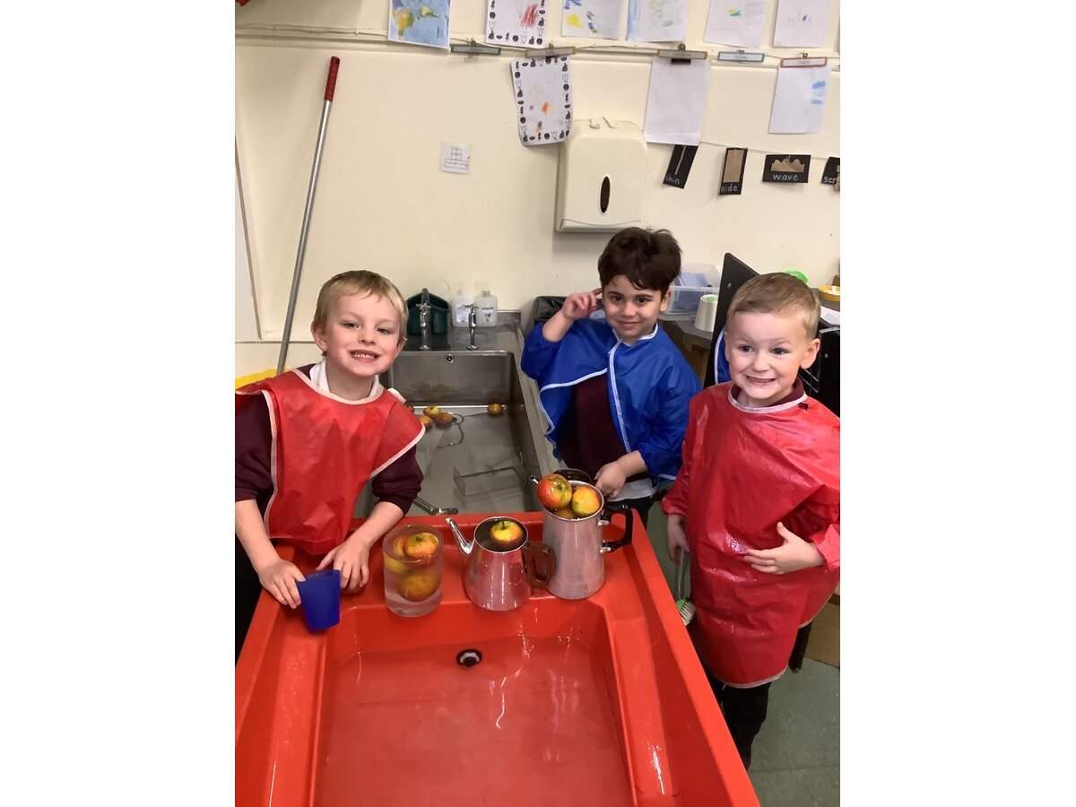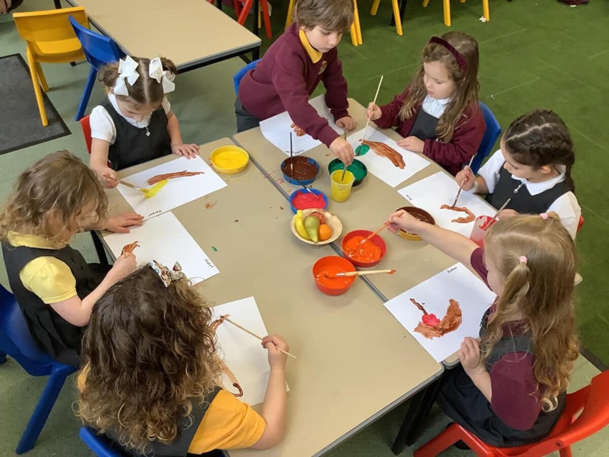 In Reception, the children have started a new story called 'The Little Red Hen'. Linked to this, in continuous provision, their cafe has opened with lots of bread to be baked, recipes and types of bread to be discovered, as well as counted out for customers. In the story ‘The Little Red Hen’, she uses the flour she grinds to make some bread so as part of DT, Reception had a go at making some flatbreads too. The children worked together mixing the flour and water- it was a bit sticky! Then, just like the Little Red Hen, they kneaded the bread then shaped it before it was cooked. In Maths, Reception have been exploring capacity with bobbing apples. The children loved being competitive seeing how many apples they could fit in each container and watching them bob back up as they put them in the water. In RE, the children have also been learning about Diwali and building on their knowledge from Nursery. Some pupils had their hands painted and they tried the flatbreads that they baked the day before with some different dips! Linked to this, Reception's P.E lesson on Friday morning was based around the celebration of Diwali! In Art, our Reception artists have produced still life paintings of a bowl of fruit. They looked very carefully at the colours and details.