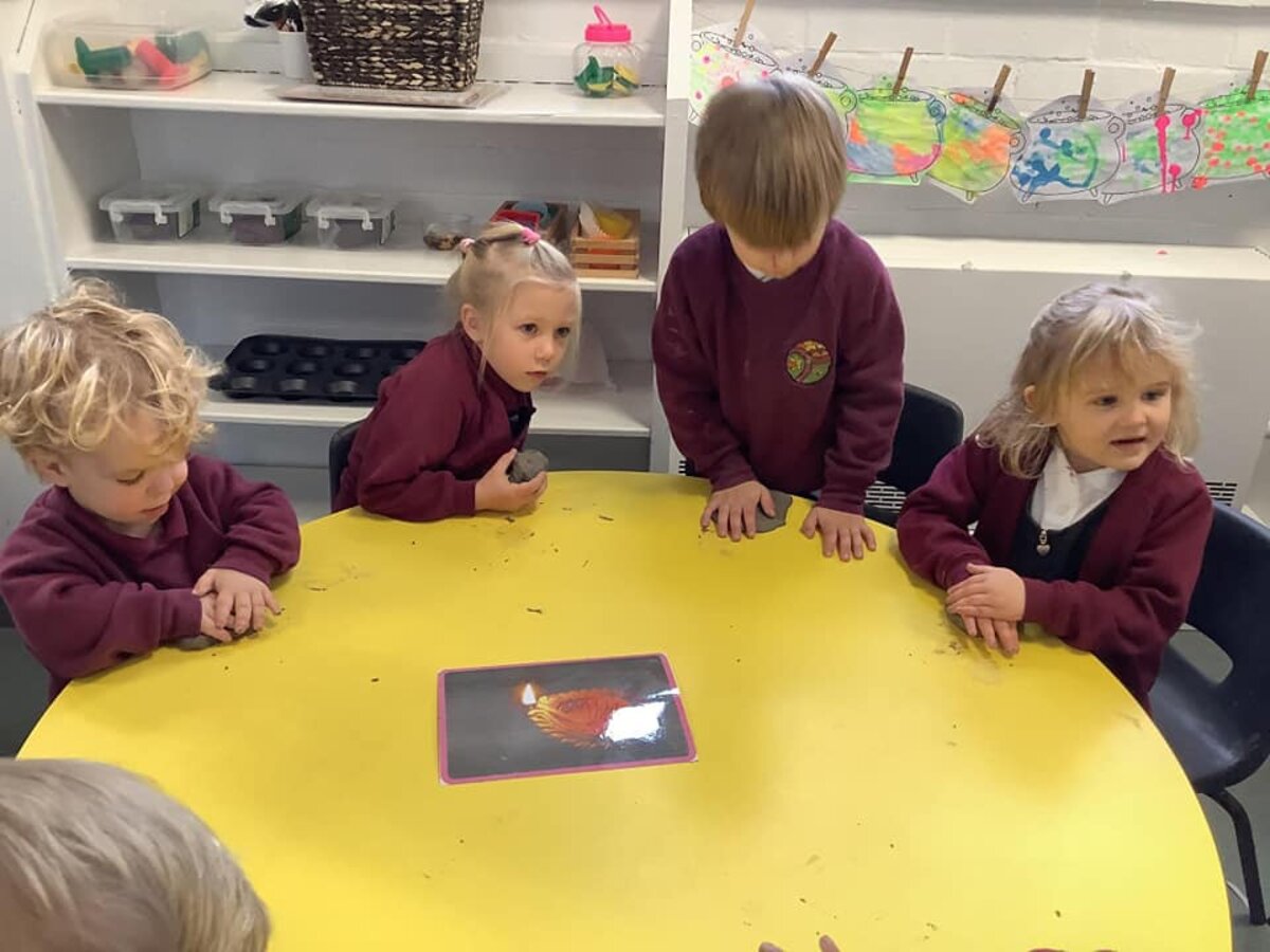 In Nursery, our Friendly Frogs have been busy making shape pictures, making salt pictures and doing some focused Maths counting challenges.This week, our youngest learners have been learning about Diwali, which is their RE focus. Diwali is the Hindu Festival of Lights, which is celebrated all over the world and celebrates the victory of light over darkness. To celebrate this festival, they have been making Diyas lamps, Rangoli patterns, decorating paper hands with Mehndi patterns and making beautiful firework pictures. Naturally, on Friday, Nursery's learning was all about Guy Fawkes and Bonfire Night- linked to their History study. The children watched a film all about Guy Fawkes and learnt lots of facts before creating beautiful firework pictures and collaging a bonfire! Linked to Science and DT, they then made some delicious bonfire treats. They had to become scientists to predict what would happen to the chocolate when they put it in the microwave. What an exciting start to the half term!