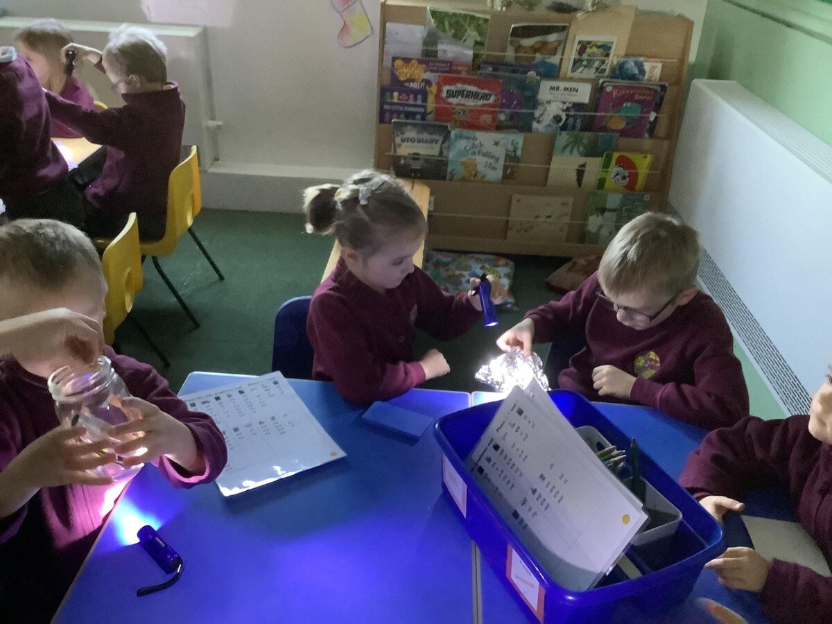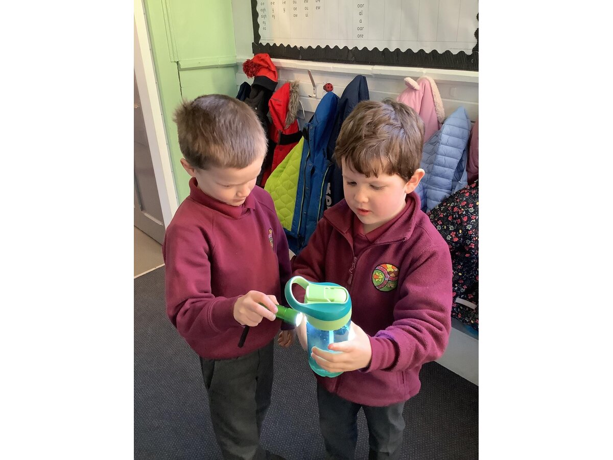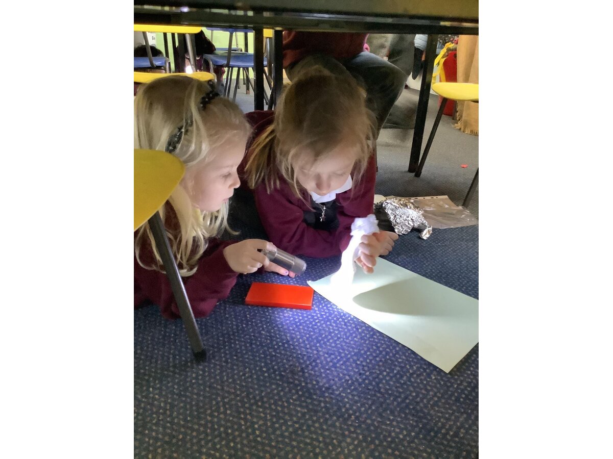 In Science last week, Year 1 used torches to form shadows. They learned that shadows are formed when a light cannot pass through an object. They learned and then applied some impressive scientific vocabulary, including opaque and transparent when testing different materials.