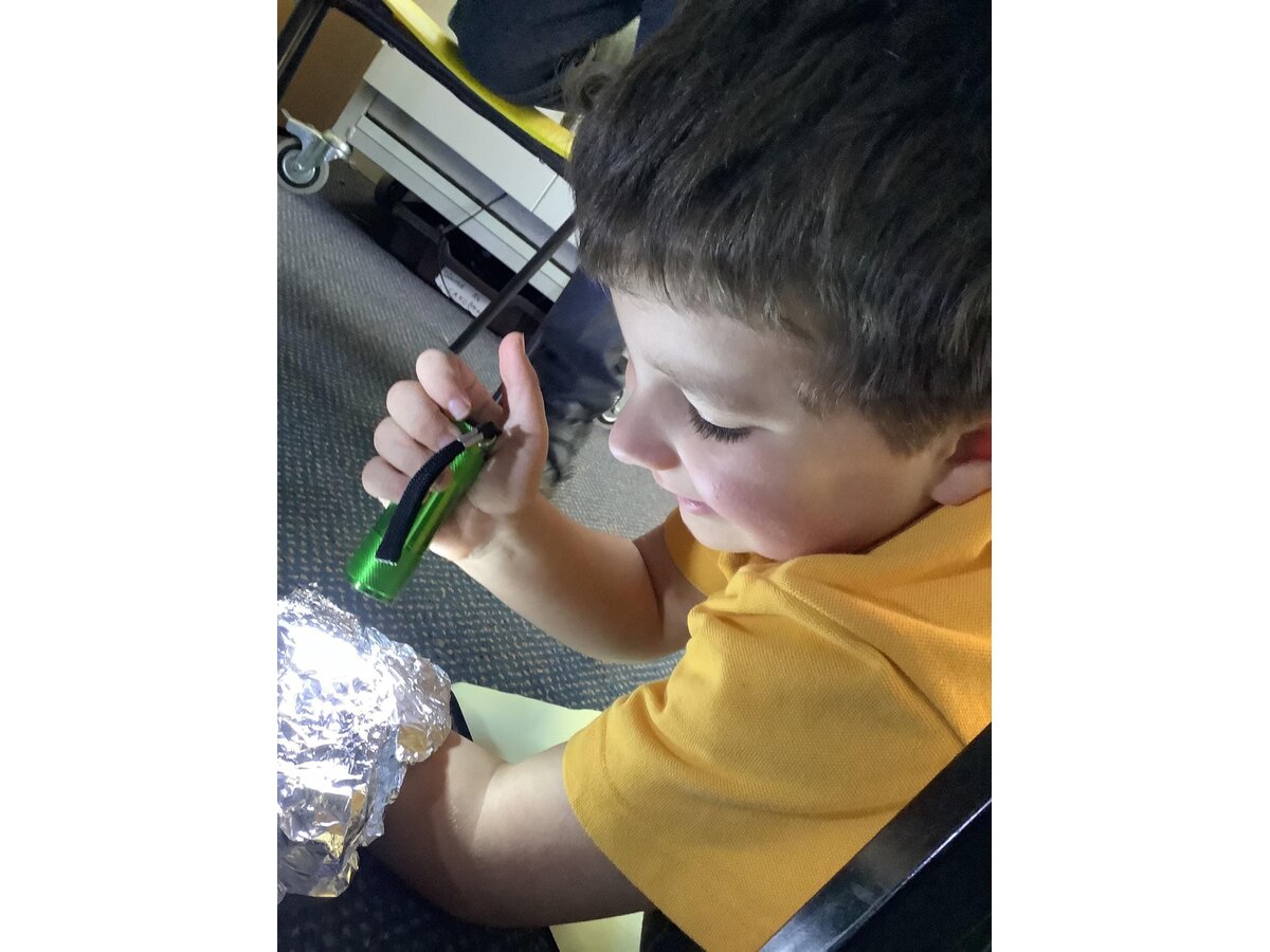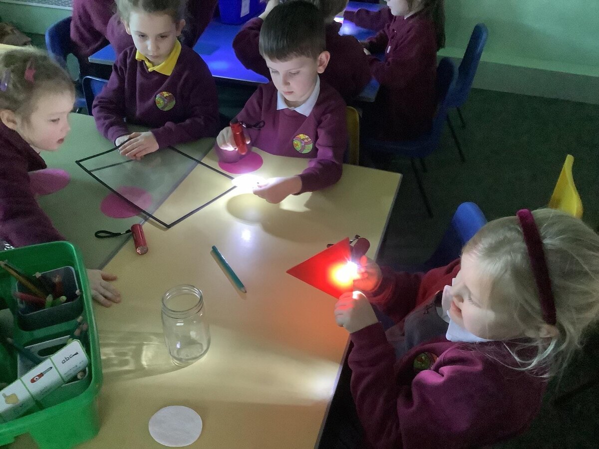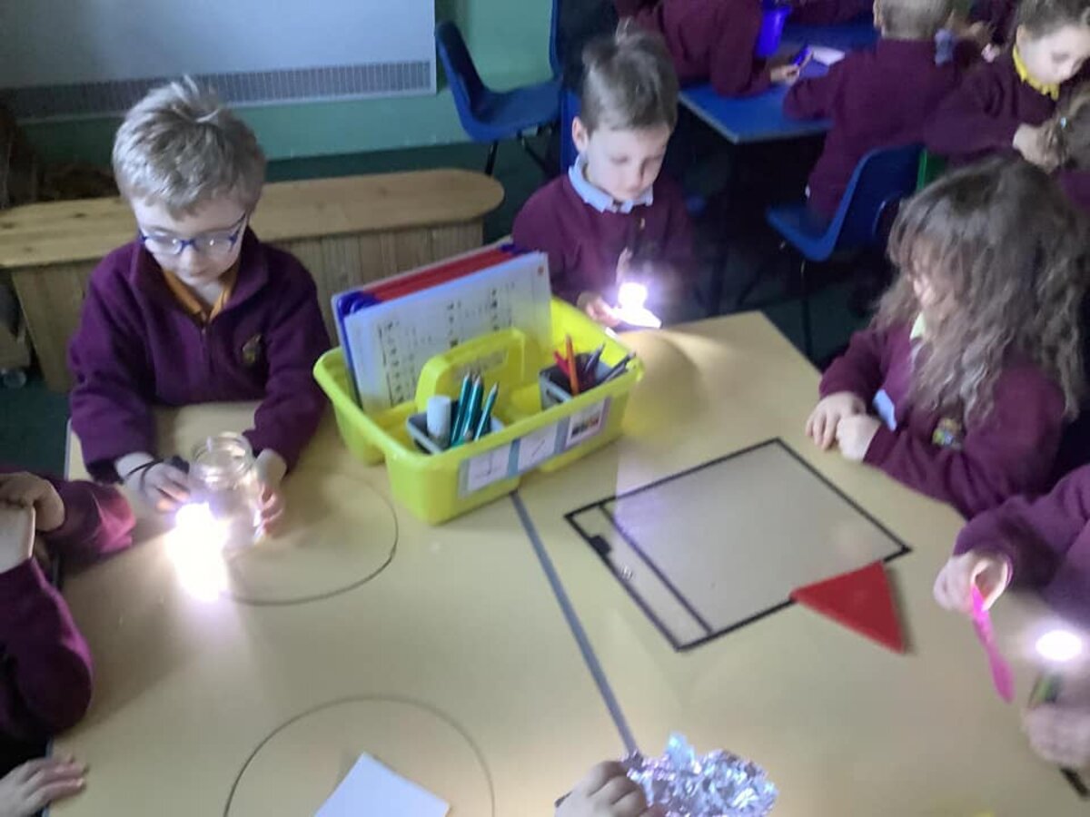 In Science last week, Year 1 used torches to form shadows. They learned that shadows are formed when a light cannot pass through an object. They learned and then applied some impressive scientific vocabulary, including opaque and transparent when testing different materials.