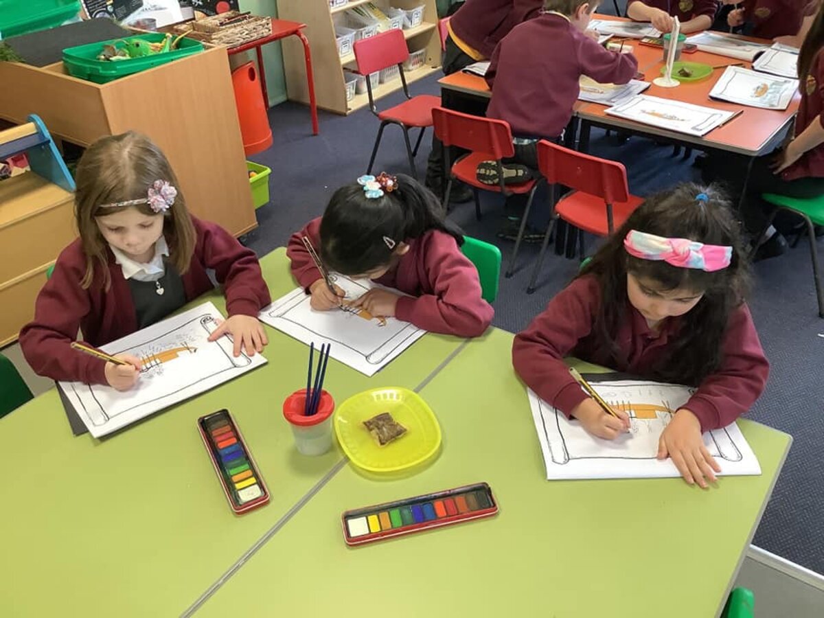 In Art, Year 1 have been looking at seascapes. In recent lessons, they have discussed different paintings by different artists and talked about the colours; how the paintings made them feel; and what they liked/disliked about them. They worked together in groups and presented their ideas to the class. As part of this unit, they have also been looking at primary and secondary colours and produced a colour wheel by mixing primary colours to create a secondary colour. In this week's lesson, the children explored Ancient Egyptian seascapes and recreated their own piece. They created their own artist inspired pictures and used watercolour paints and teabags to create the papyrus effect.