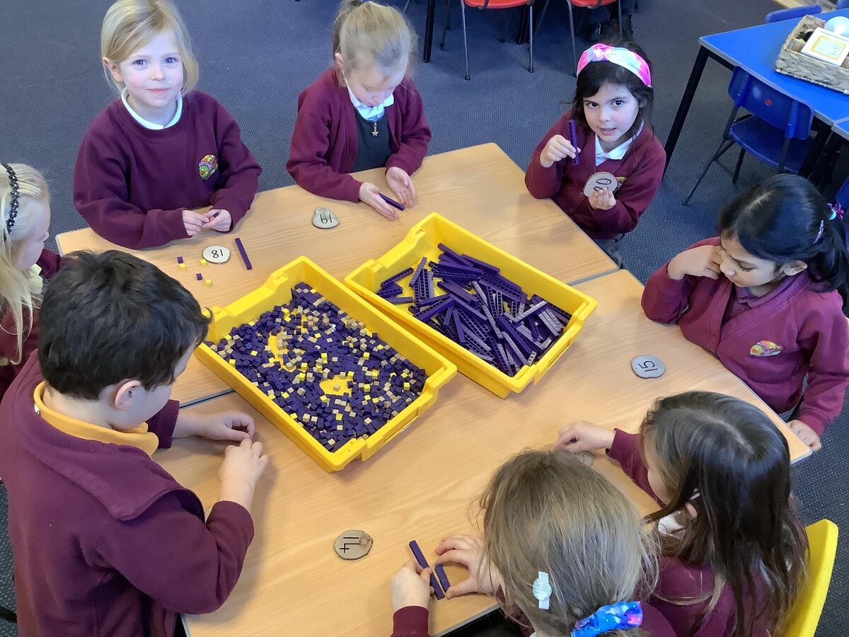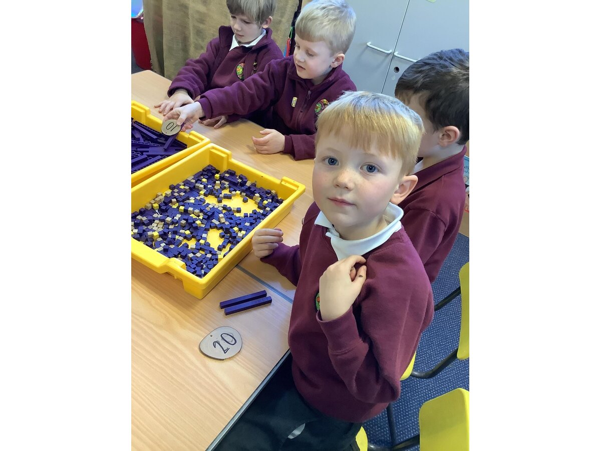 In Maths, the children have been introduced to base 10. They used the tens to count in multiples of ten and they could recall how many ten sticks they would need to make various numbers. The children know that all multiples of ten end in a zero. Last week, they progressed this understanding further by applying 'greater than', 'less than' and 'equal to' symbols, when comparing numbers to 20 and multiples of 10.