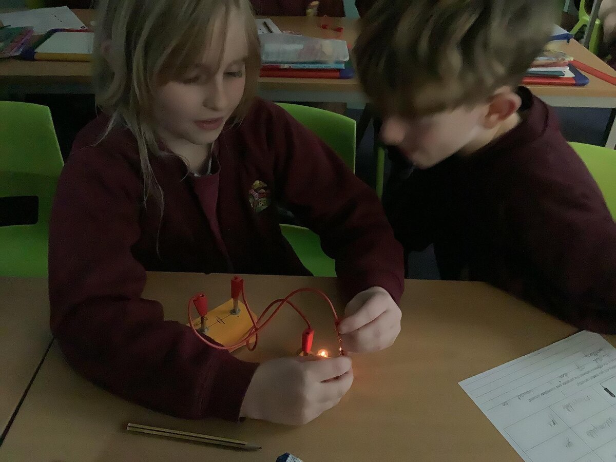 In Science, Year 1 have been exploring shadows and how they are formed, whilst Year 4 have been investigating electricity. They tested a variety of different combinations and figured out what a circuit needed to work.