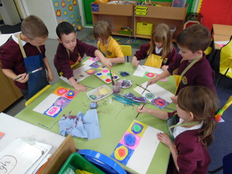 KS1 Art Club have been busy mixing primary and secondary colours. We looked at the work of Wassily Kandinsky and created our own versions of his 'Concentric Circles' masterpiece!