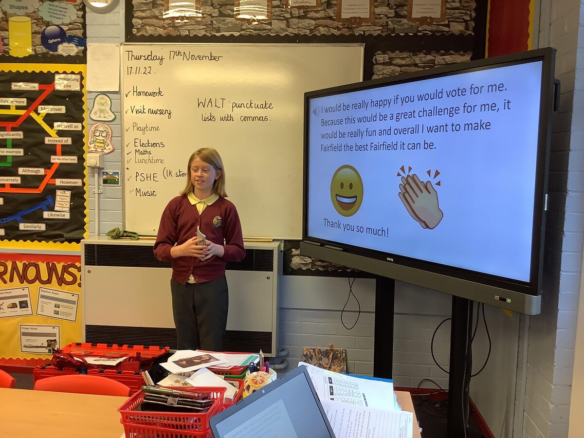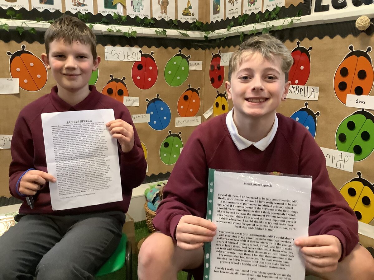 At Fairfield Primary School, we understand the importance of pupil voice and give it a high profile within the school. The way we organise our school council and call it school parliament, reflects this. In addition to gathering the pupil voice, we see it as a golden opportunity to introduce children to our parliamentary system and teach them about British Values.